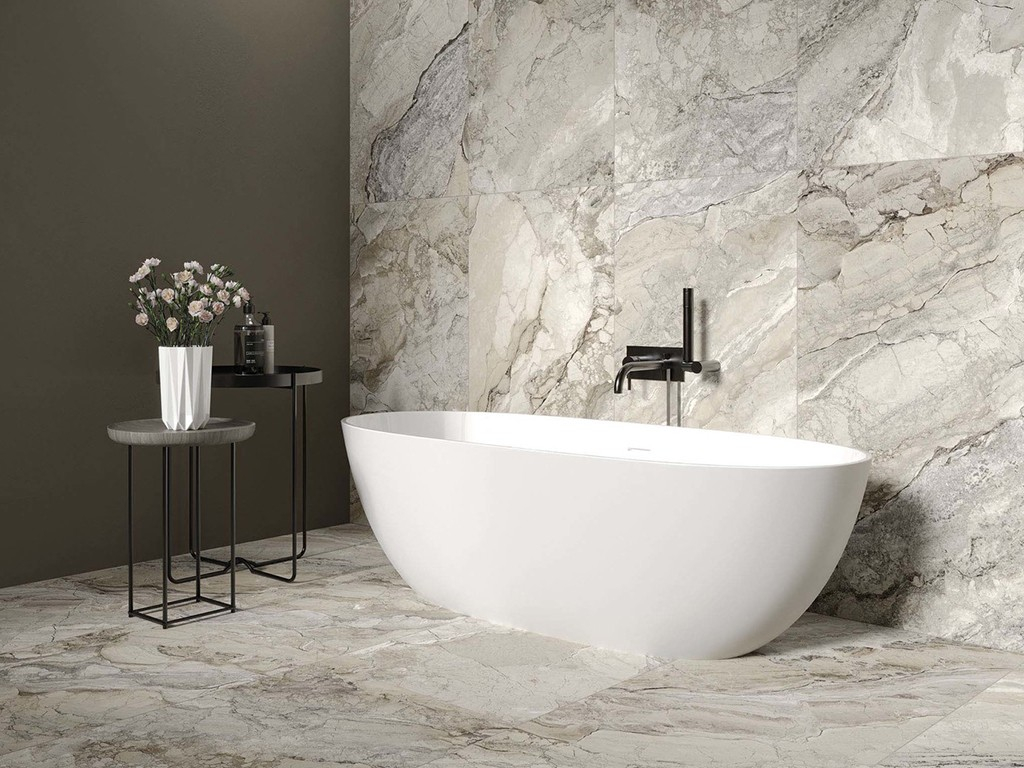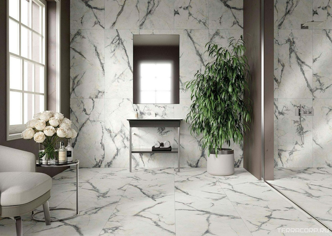 Качественные фото товаров 60x120 сантиметров и изображений в интерьере позволят заранее представить будущее оформление площади. Плитка керамогранит Charme на сайте под кодом «96333» является средне бюджетного типа по 3700 рублей за метр.