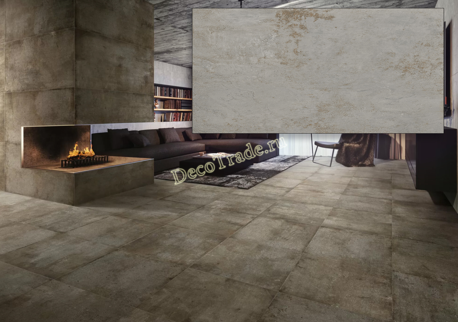 Качественные фото товаров 60x120 сантиметров и изображений в интерьере позволят заранее представить будущее оформление площади. Плитка керамогранит Eco Beton на сайте под кодом «91214» является средне бюджетного типа по 1100 рублей за метр.